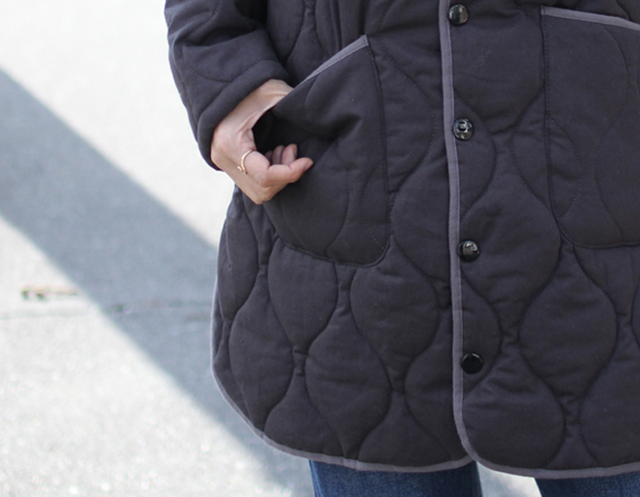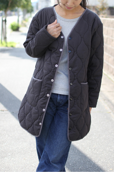 ヘンプコットンキルティング生地のGOHEMPのロングコートが入荷しました。