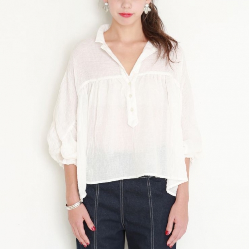 ギャザーがたっぷりなコットンの柔らかな素材を使ったふんわりブラウス。