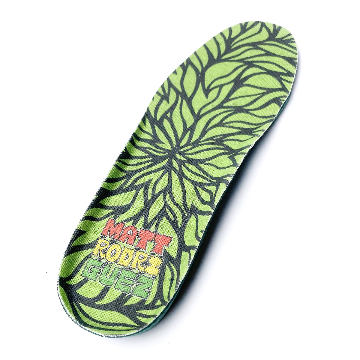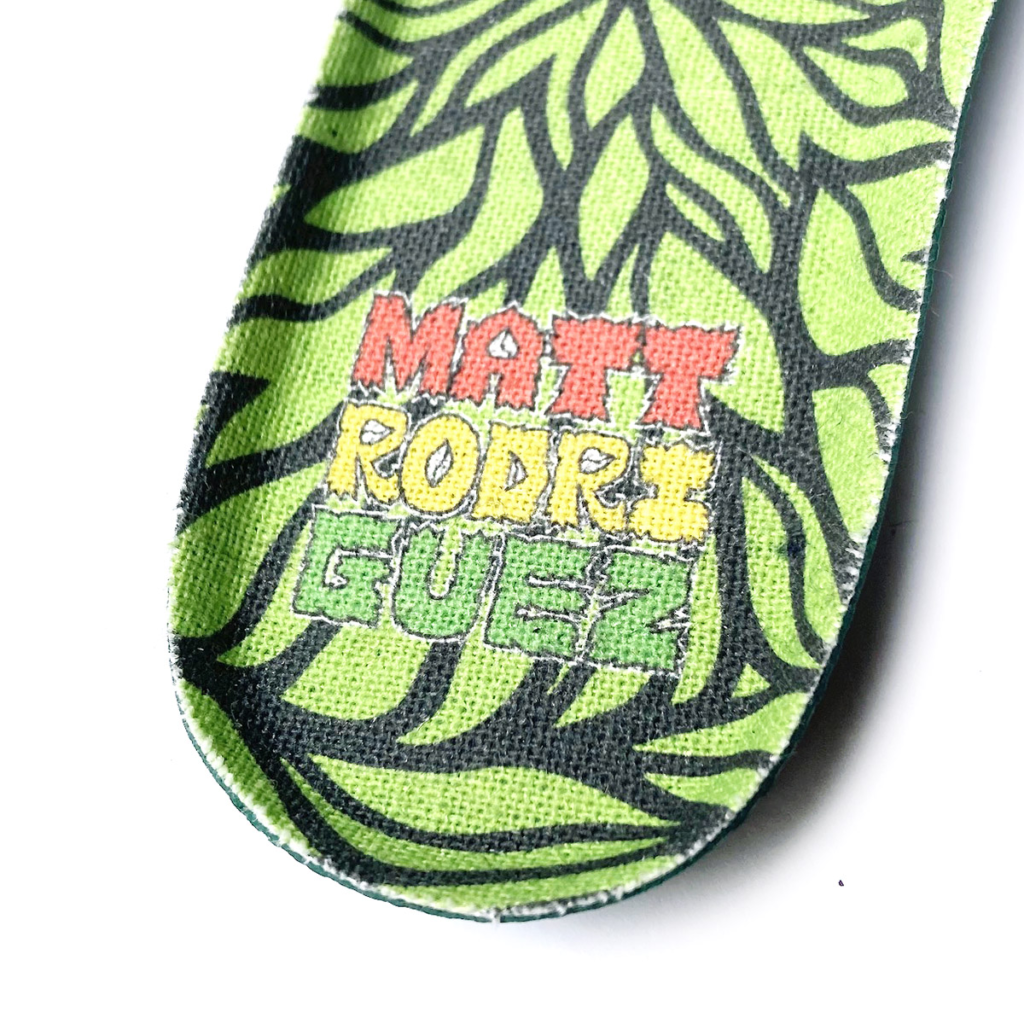 かかと部分には MATT RODRIGUEZ自身を表す”es la boom”ロゴ刺繍が同色のブラックで入っています。
