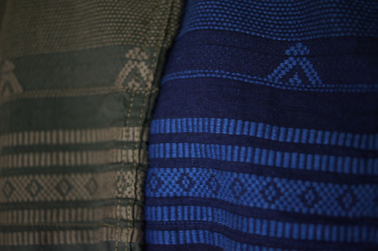 刺子の刺繍が全面に施された生地を使用したもので、ワンピースやショーツの裾部分にティピ模様を配置した手の込んだ夏用のアイテムたちです。