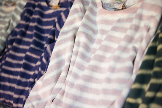 手作業でボーダーにブリーチ染めされています。ベストに合わせてもかわいいロンTEEです。