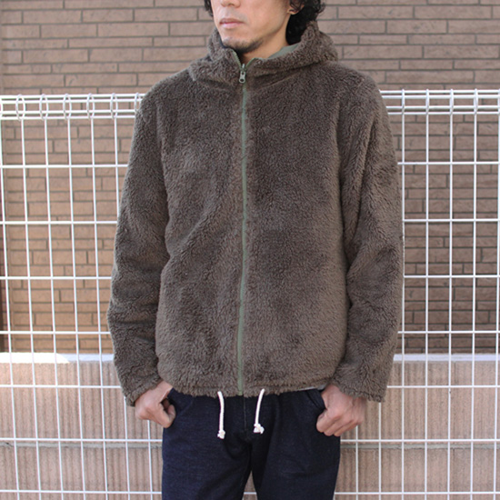 GOHEMPからミニヘリンボーン生地と、毛足の短いボア生地の両面使えるリバーシブルフーディージャケットが入荷しました!