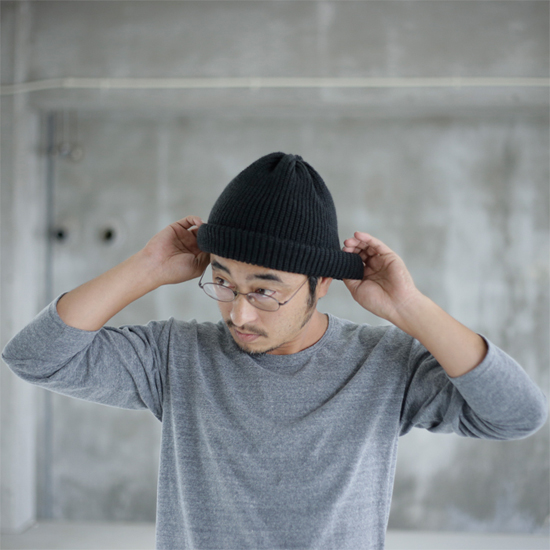 ウール100%ニット帽。2回折り返しの程よいボリュームと柔らか素材が今年流。