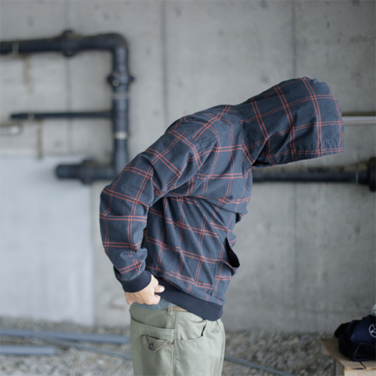 重ね着でも単体でも存在感あるチェックパーカー。程よい厚みの軽い生地で、使い込んでカッコ良い古着にしていきたいアイテム。