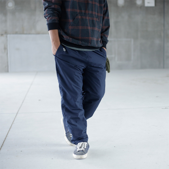 冷たい風を通さない軽量ナイロンパンツ。履き心地が良い裏地付きです。