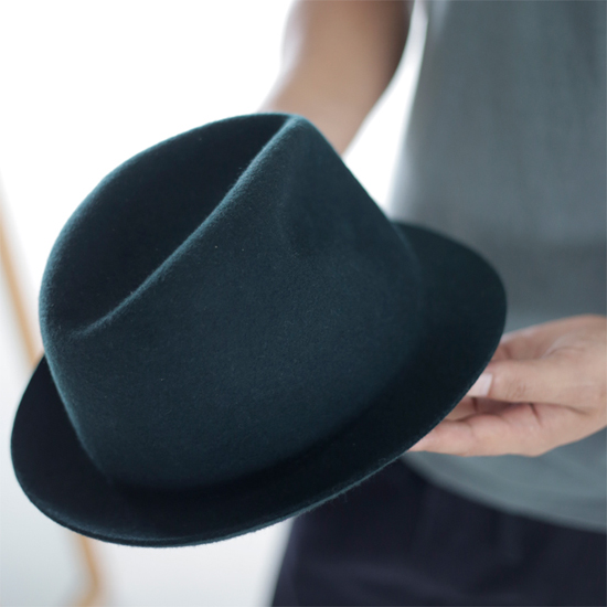 こちらもウール100%。ジャパンメイドのシンプルこだわり型押しハット。