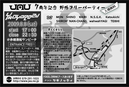 ジャウーもとうとう7周年、今年の8/8は赤穂のビーチで夏祭りです!!