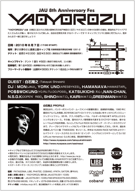 JAU8周年イベント「YAOYOROZU2010」詳細