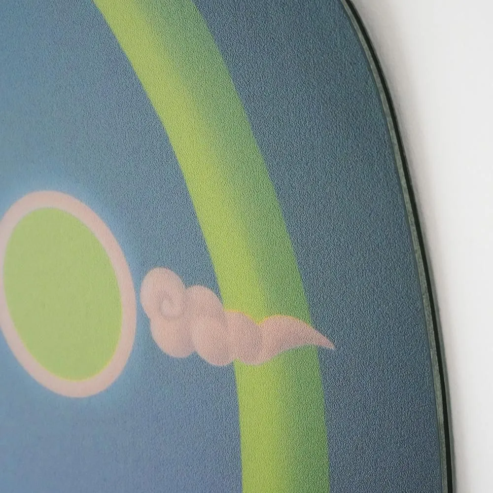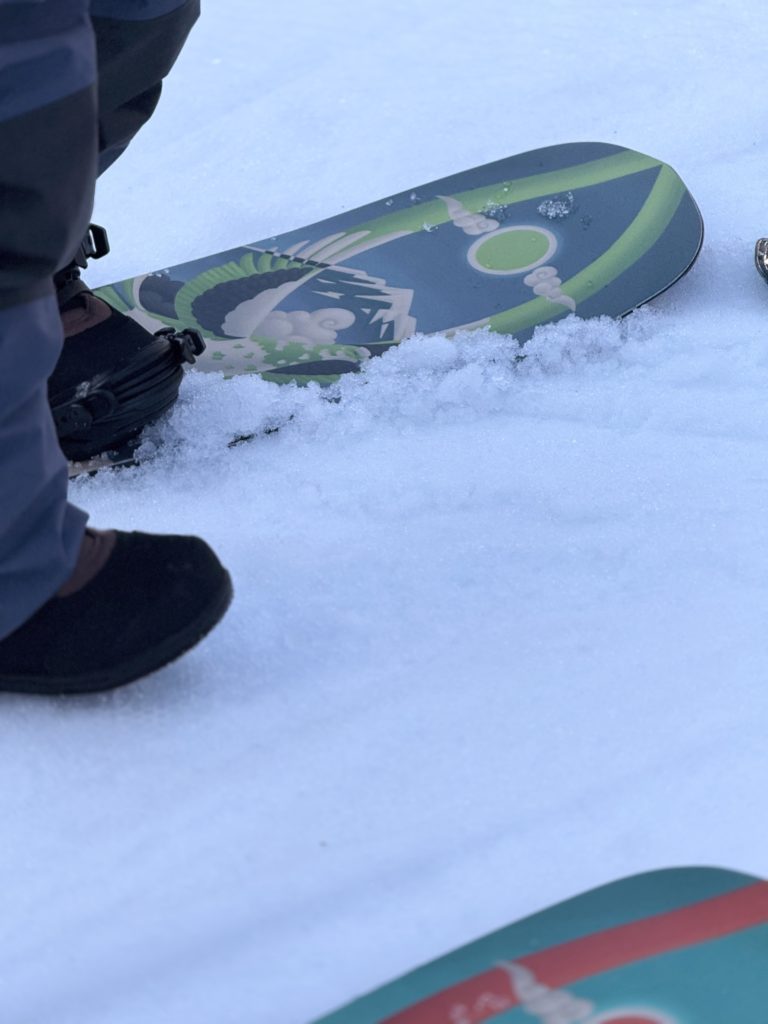 余談となりますが、試乗した日に荒くれキッズにノーズの上を踏み通られて、更に股の間にも板を突っ込まれたのですが、トップシートは全くの無傷。ゲンテンのスプリットボードなどでも使用されるザラザラの強度の高いトップシートが採用されているので、これにより大切なアートもしっかり守ってくれることでしょう。