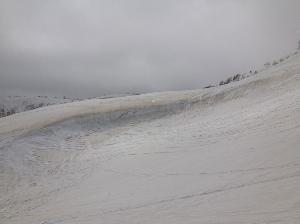 晴れたことにより一気に暖かくなり、雪が緩んで、自分の前の一人目のシーサーさんが滑った時に表面の雪がずるずると軽く滑り落ちていましたが、何とか無事滑降。