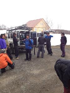 朝8時にゲンテンショールーム前に集合し、車で今回目指すイワオヌプリの山の麓へ向かいます。