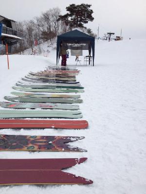 GENTEMSTICKの板が30数本、試乗していただいた方々は60数人と、混雑している時は少し板が足りないほどの大盛況ぶりでした!