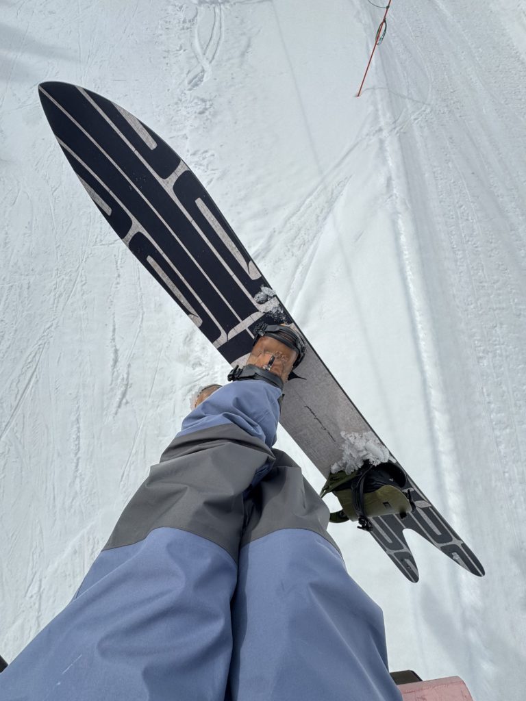 身長よりはるかに長いレングスでも、ゲレンデ内では長さが邪魔になるようなことはなく、長さに対しての黄金バランスか細めの幅でとてもエッジへの食いつきが良く、エッジの端から端までがしっかりと雪面を捉えてくれて、ターン中は気持ち良さしかなかったです。